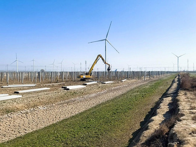 當(dāng)下項(xiàng)目正有序推進(jìn),1#、2#、3#光伏發(fā)電單元的樁基施工已圓滿完成,13#、12#、11#、10#、7#、4#光伏發(fā)電單元的樁基施工,以及組件和支架安裝等后續(xù)工作也在穩(wěn)步推進(jìn),現(xiàn)已累計(jì)完成9000根管樁施工,預(yù)計(jì)將于4月中上旬圓滿完成光伏區(qū)的打樁作業(yè),隨后全面鋪開支架及組件的施工,積極搶抓工作進(jìn)度,全力保障項(xiàng)目早日實(shí)現(xiàn)并網(wǎng)發(fā)電。